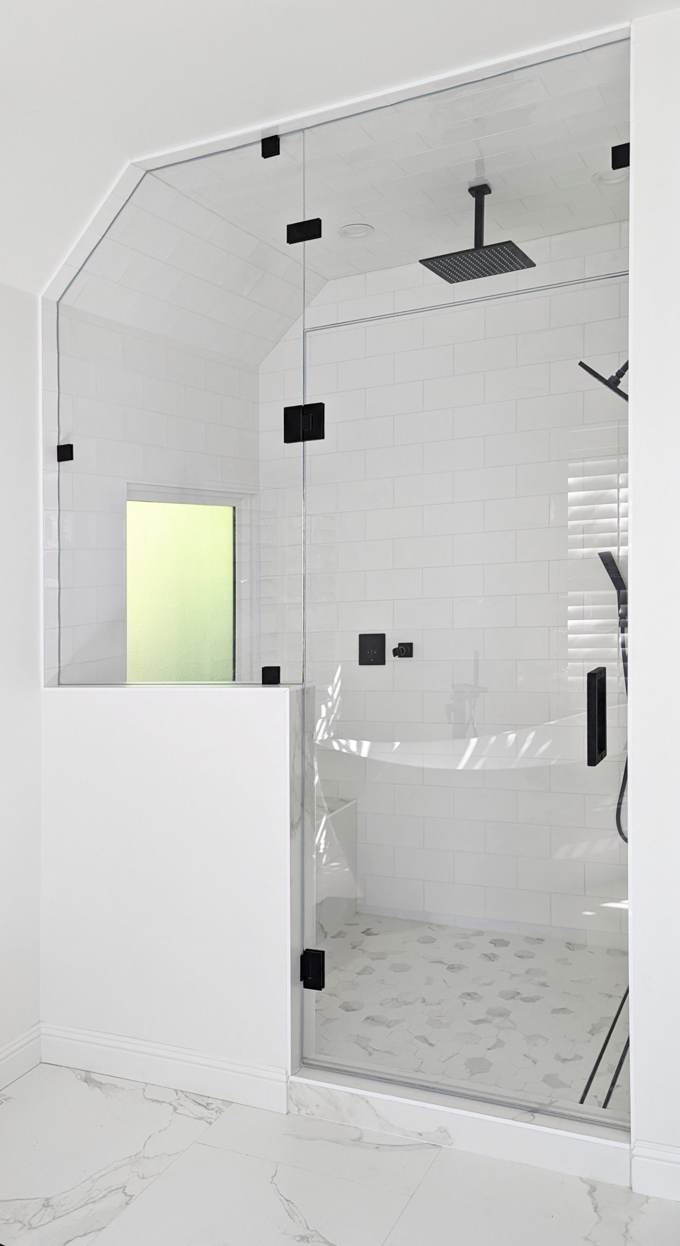 Our selection of frameless shower doors include Sliders, 90-degree, and Inline shower doors for maximize space without compromising style. For those incorporating a bathtub into their design, we provide specialized shower door solutions that seamlessly blend functionality and aesthetics. Recognizing the unique needs of every project, we also offer Custom shower doors. This allows for tailored dimensions and designs to perfectly fit any bathroom layout. To showcase the transformative power of our products, our Before & After gallery provides visual inspiration and demonstrates the impact of upgrading your shower enclosure. We use hardware by Eurotech and US Horizon. Finally, our Info page serves as a comprehensive resource, offering detailed specifications, maintenance tips. We will gladly answer questions, ensuring you have all the necessary information to make an informed decision.